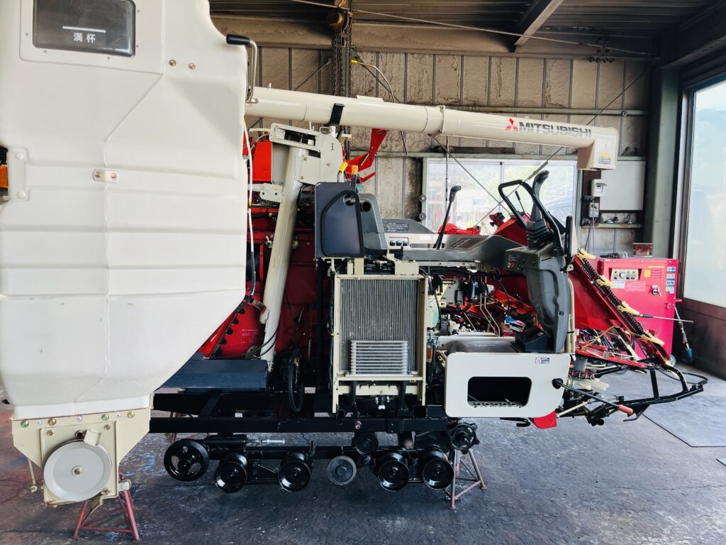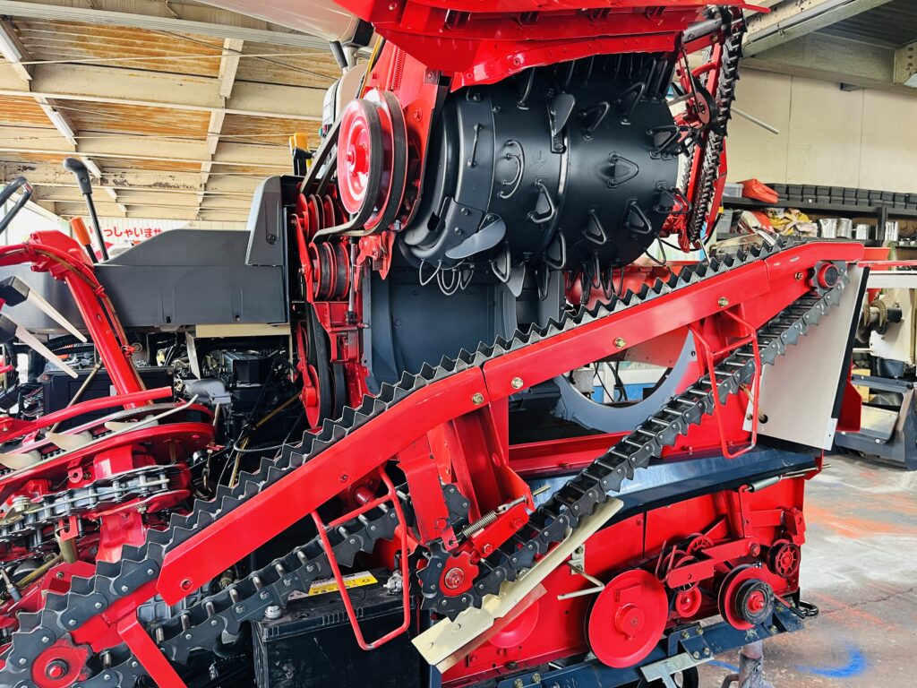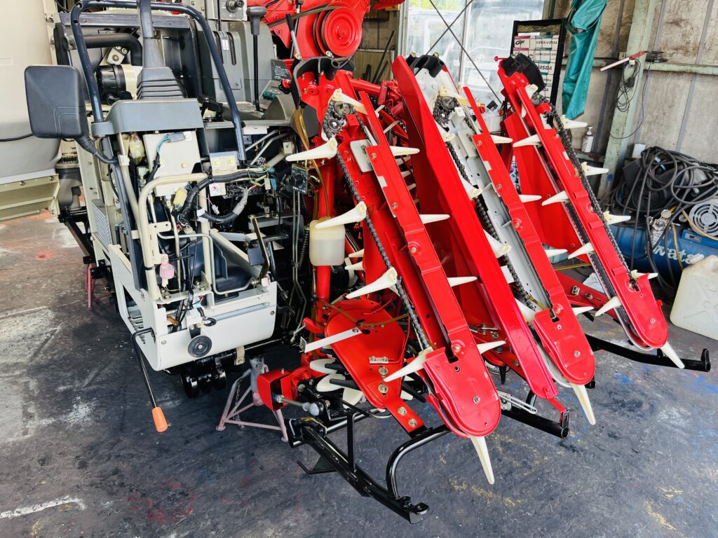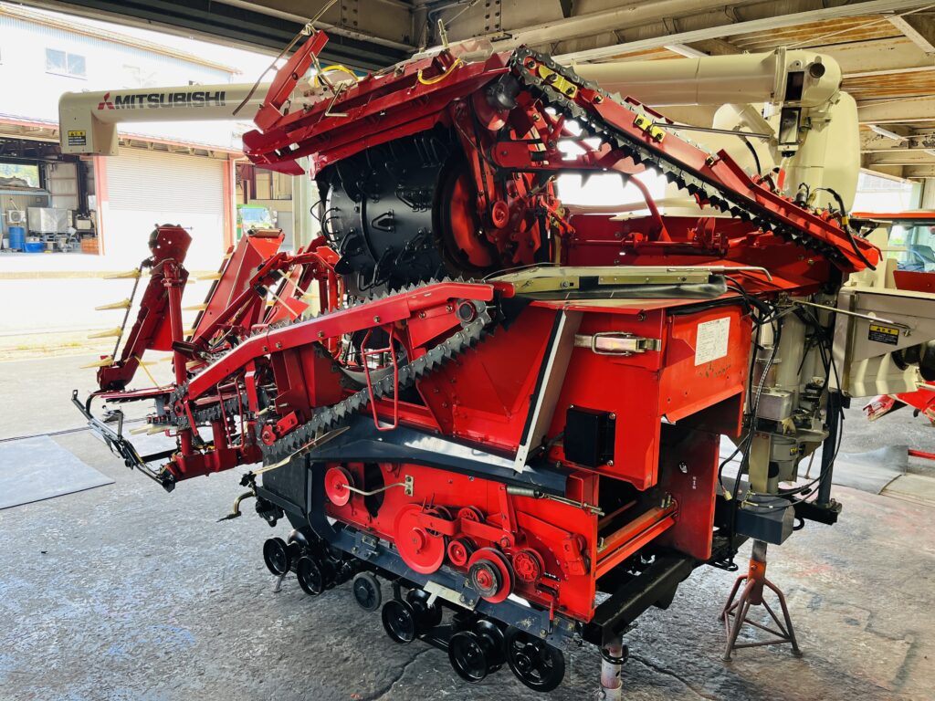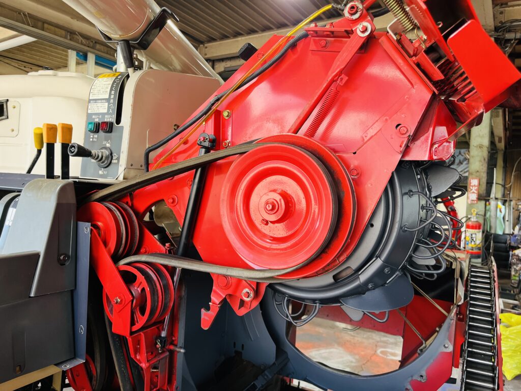 *一通り空回しにて脱こく、刈取動作確認済です。2年前に一通り点検整備済みの機械ですので不具合箇所も少なく良好でしたが再度、上記点検整備を行いました。