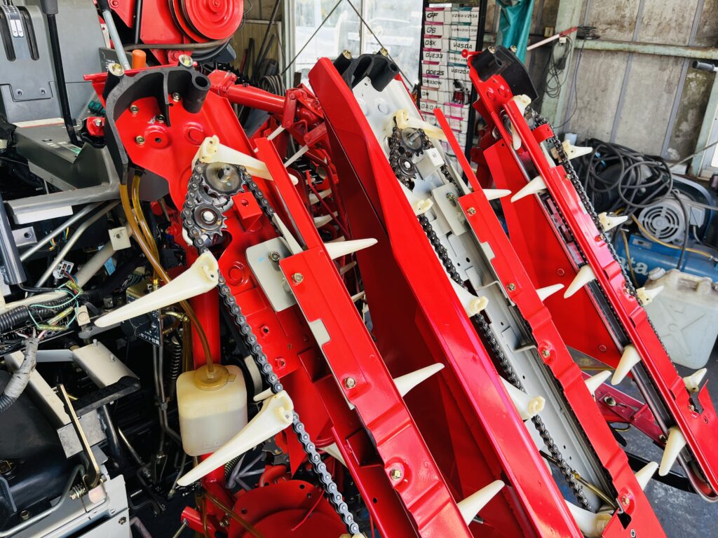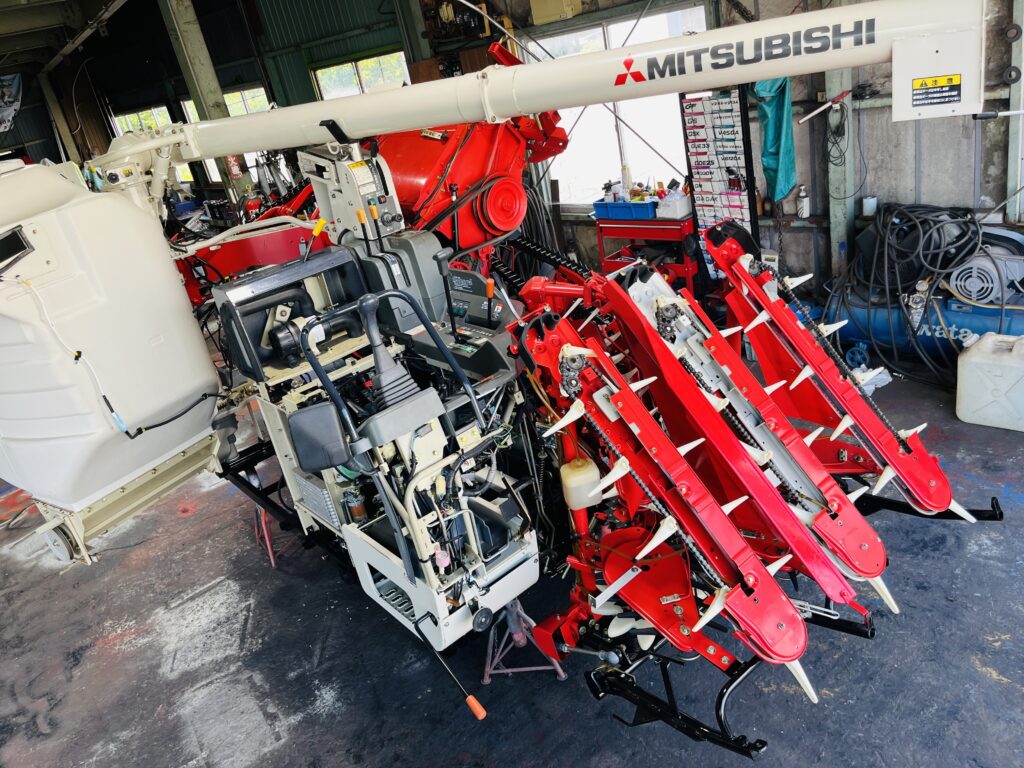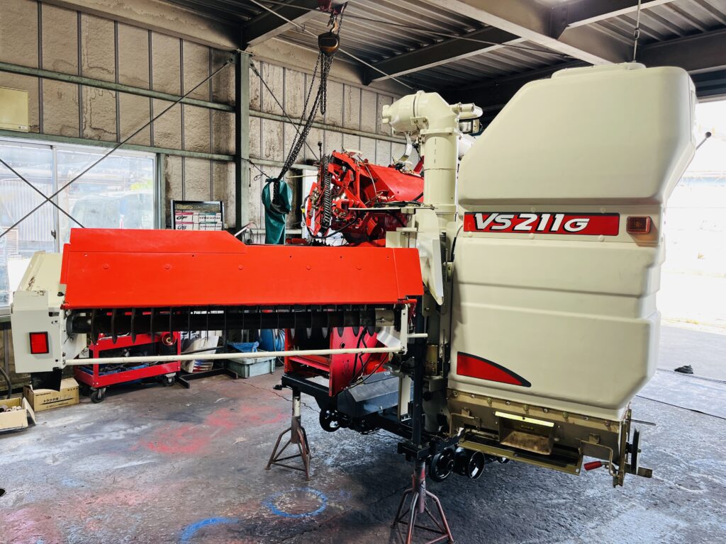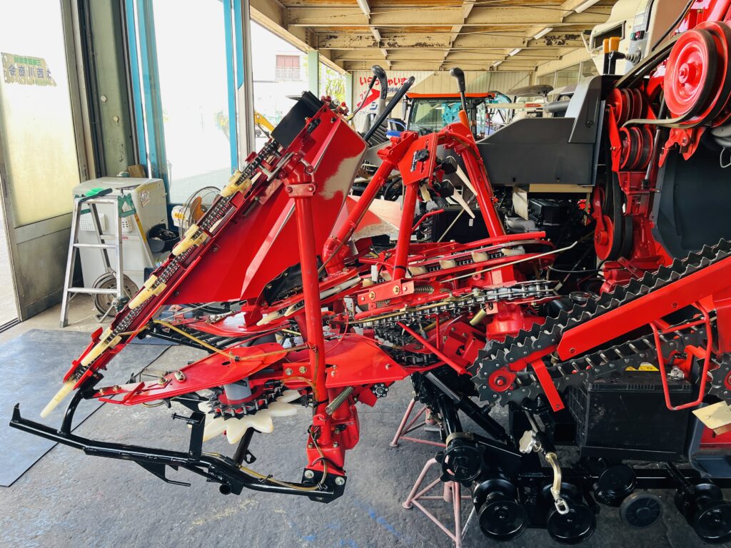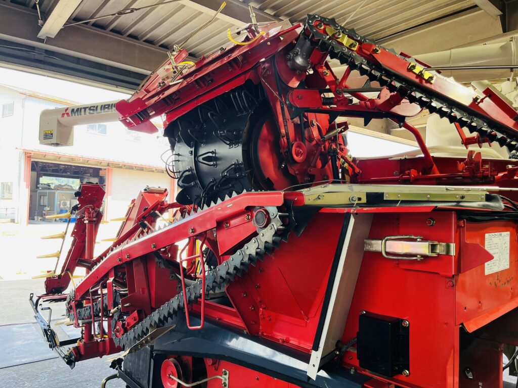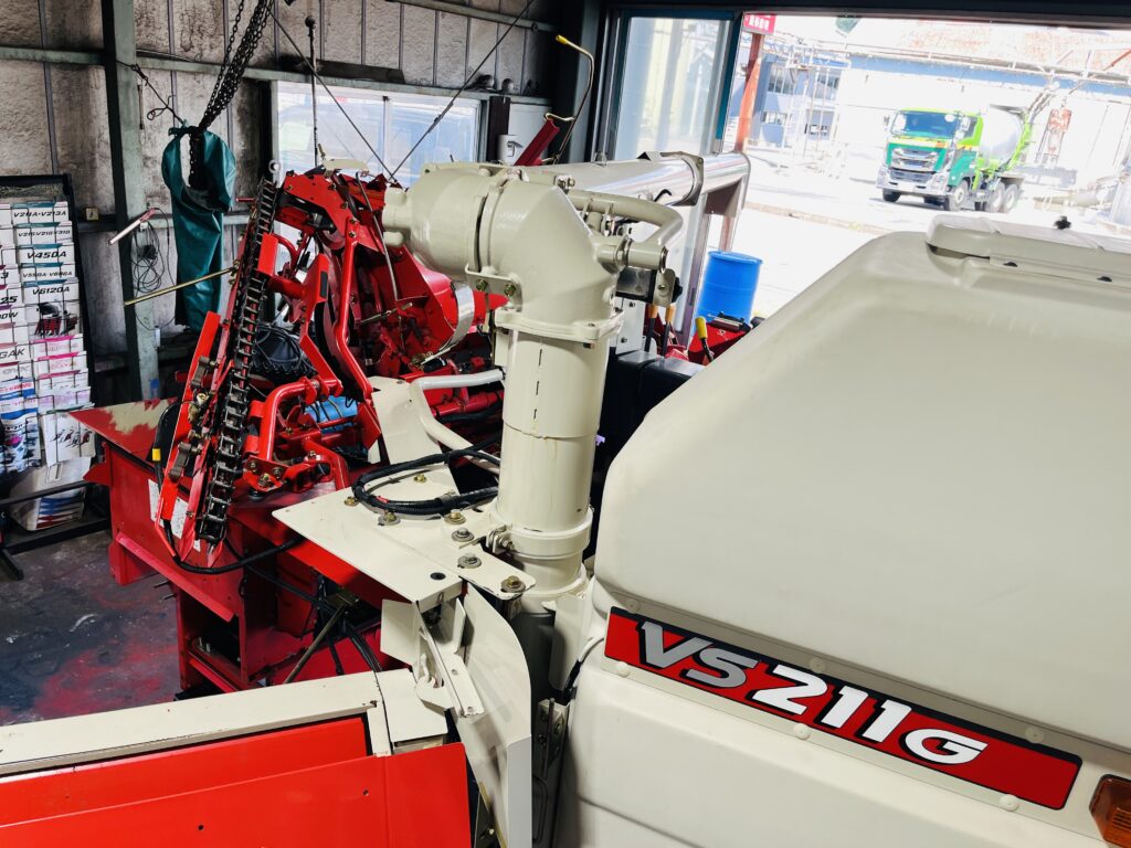 *一通り空回しにて脱こく、刈取動作確認済です。2年前に一通り点検整備済みの機械ですので不具合箇所も少なく良好でしたが再度、上記点検整備を行いました。