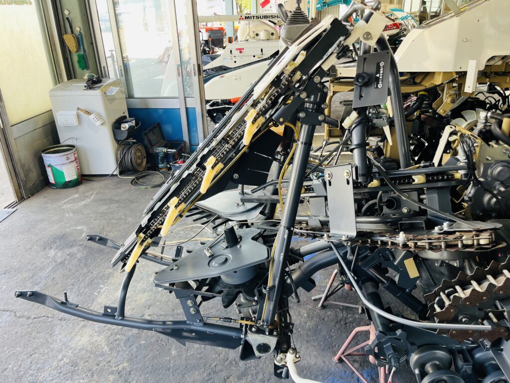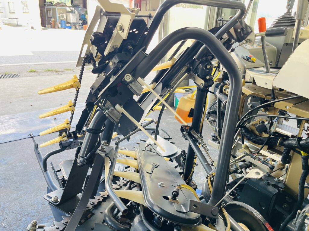 *刈取引き起こし部ゴムプレート交換