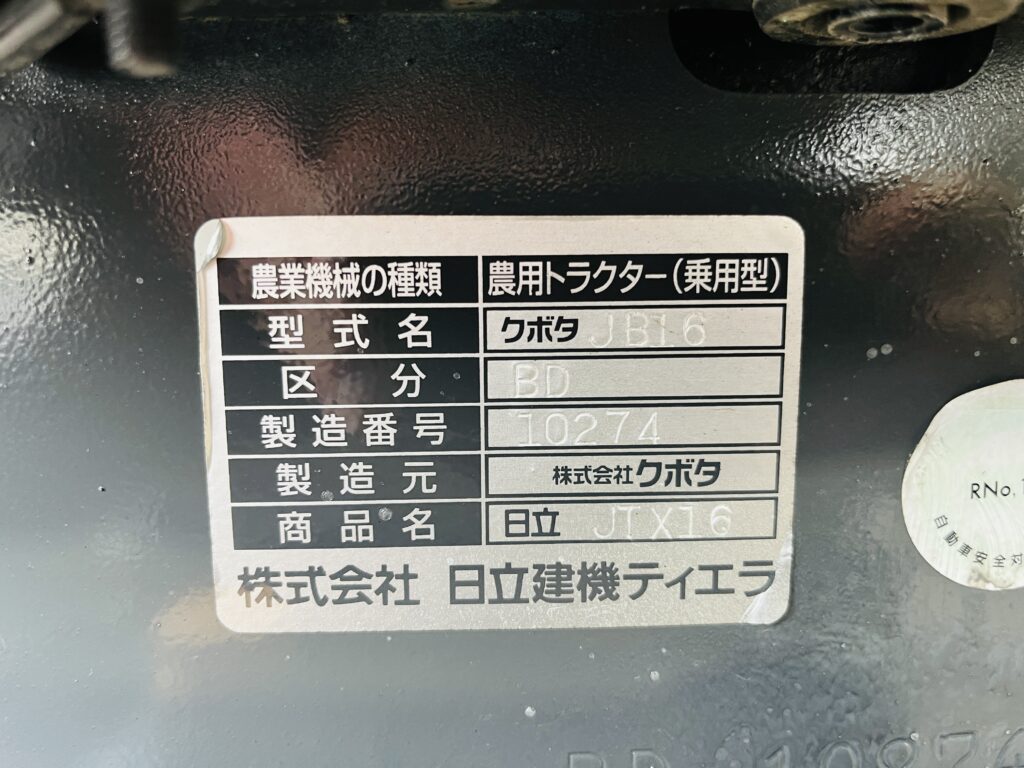 *型式:JTX16 (クボタJB16)